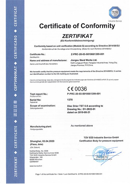 2020-08-29150T/D 500平方斯道德圆盘式干燥机发运德国