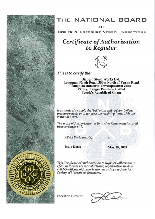 2021-06-21我公司收到美国ASME颁发的U钢印授权和NB认证证书